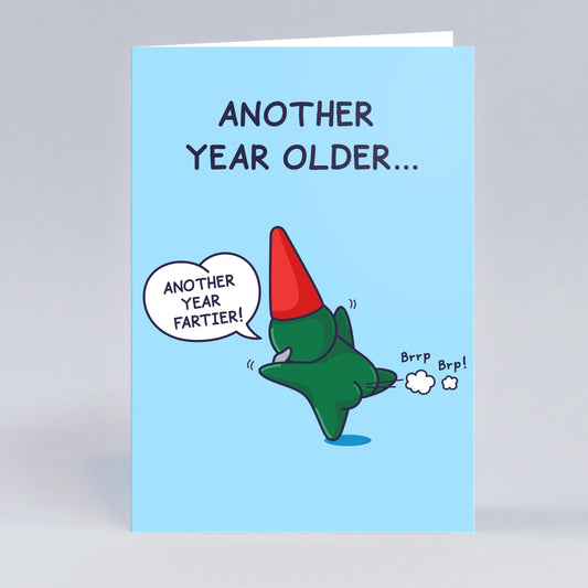 Another Year Older - Funny Birthday Card for Him - Cheeky Farting Gnome