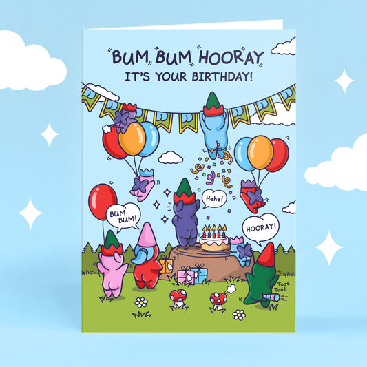 Bum Bum Hooray - Funny Birthday Card For Kids - Cute Elves and Gnomes