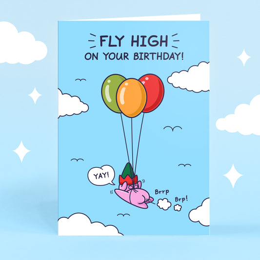 Funny Birthday Card for Kids - High Flying Elf - Cheeky Farting Elf