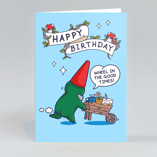 Wheelbarrow Cake Gnome - Funny Birthday Card - For Him