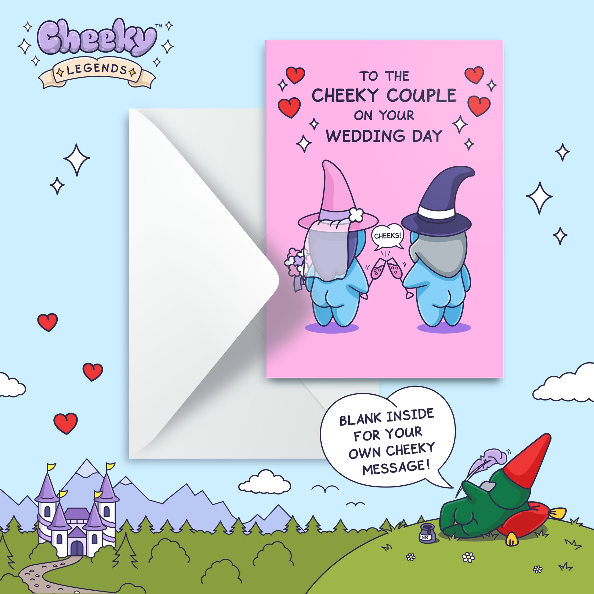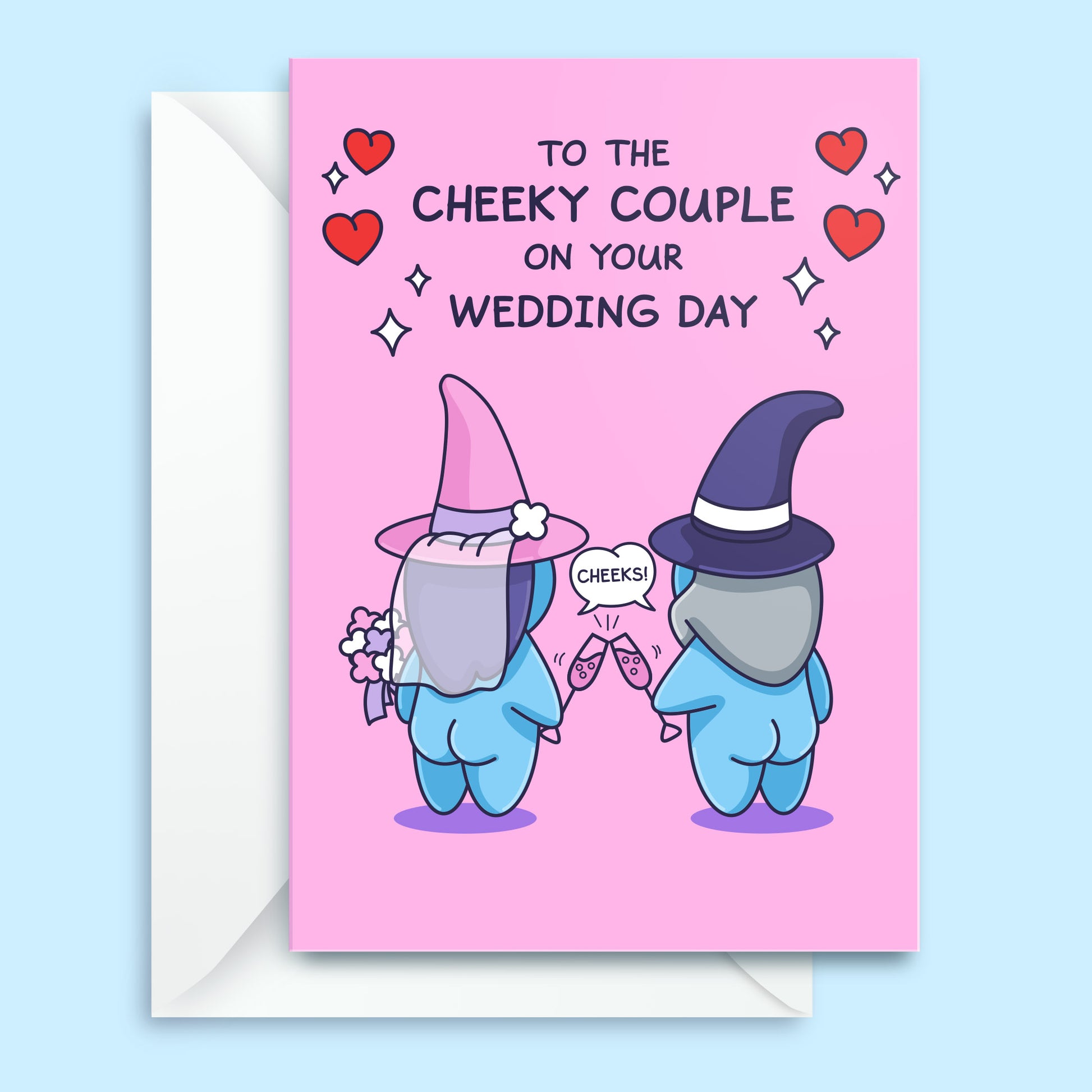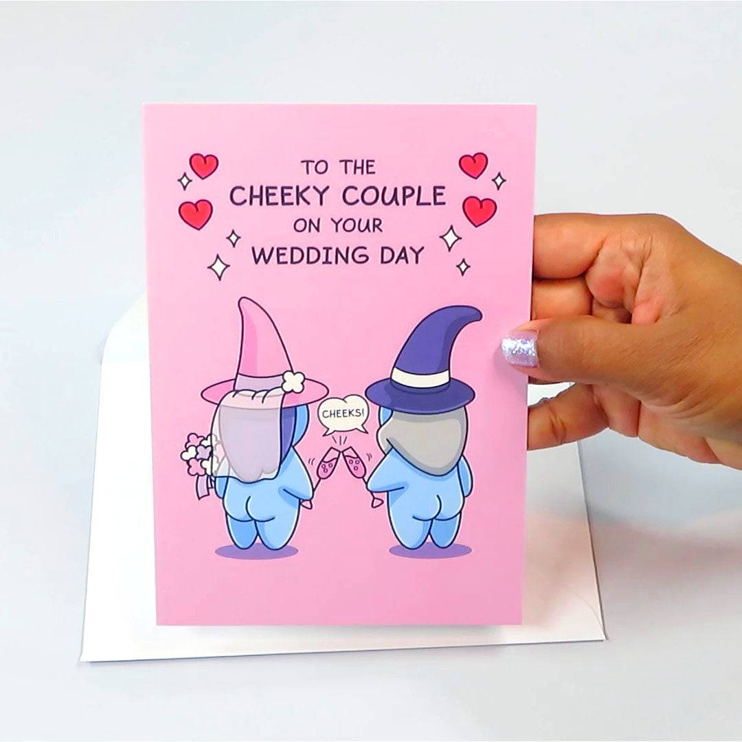 Rear Rear, to the love struck couple on their big day. Give them laughter as they crack open this wizard card. The perfect greeting card to celebrate their marriage and a cheeky ever after together as Husband and Wife.