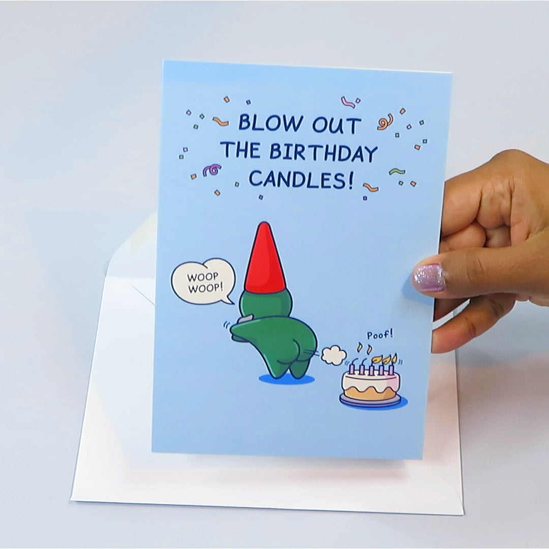 There is another way to blow out the birthday candle like this cheeky gnome found out. Perfect for dad, brother, grandad, uncle, friends and colleagues! 💌
