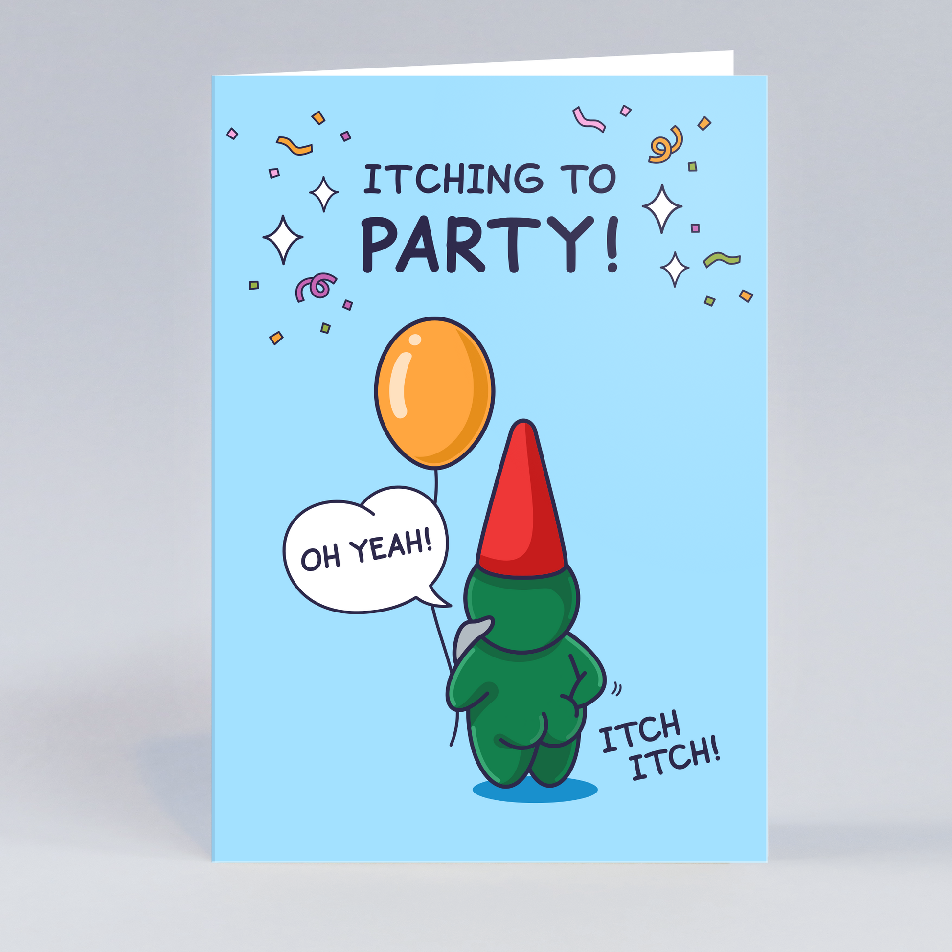 Cheeky Gnome Itching To Party Funny Birthday Card