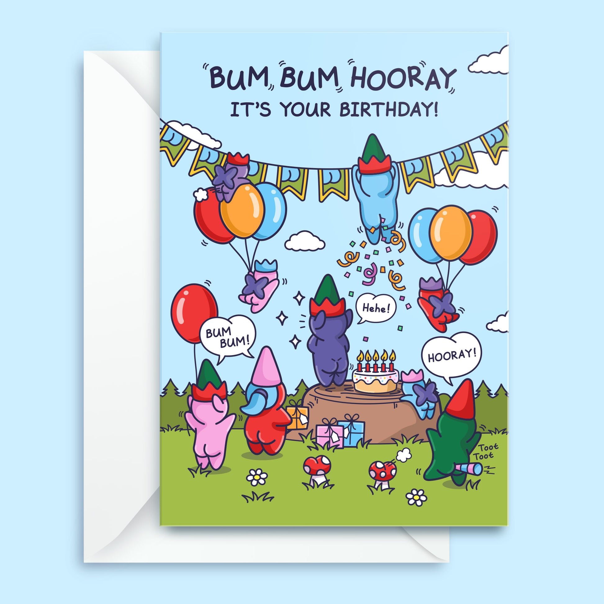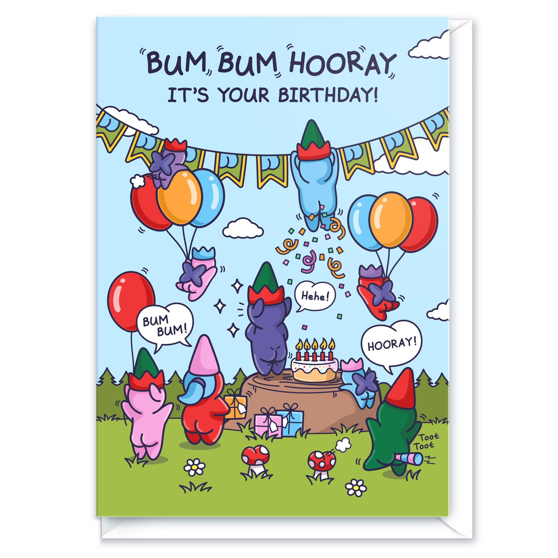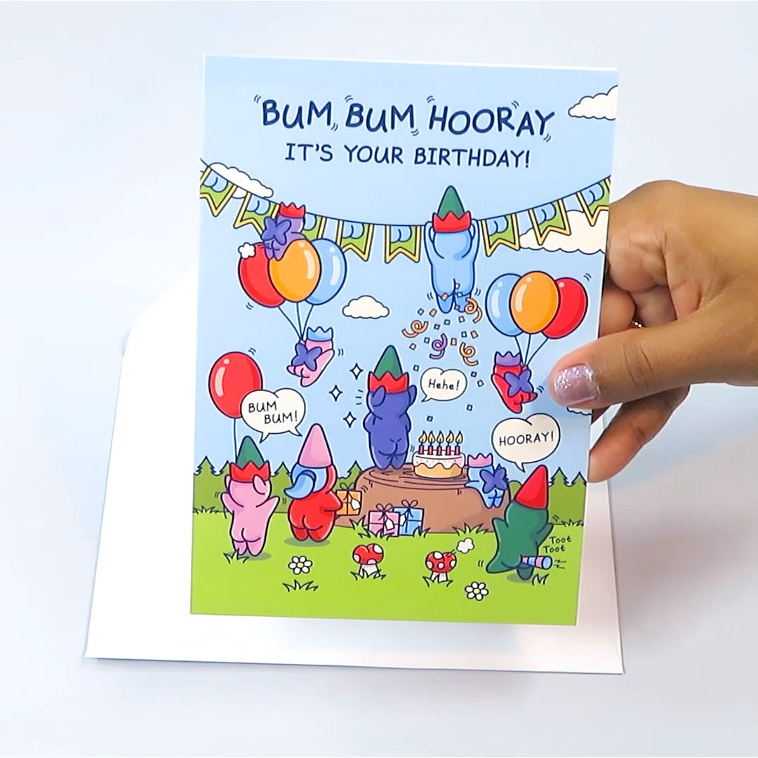 Bum Bum Hooray - Funny Birthday Card For Kids - Cute Elves and Gnomes