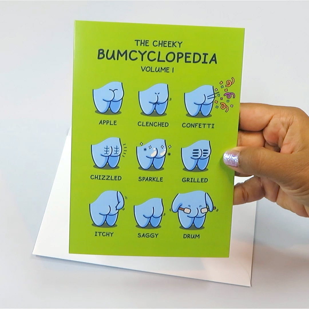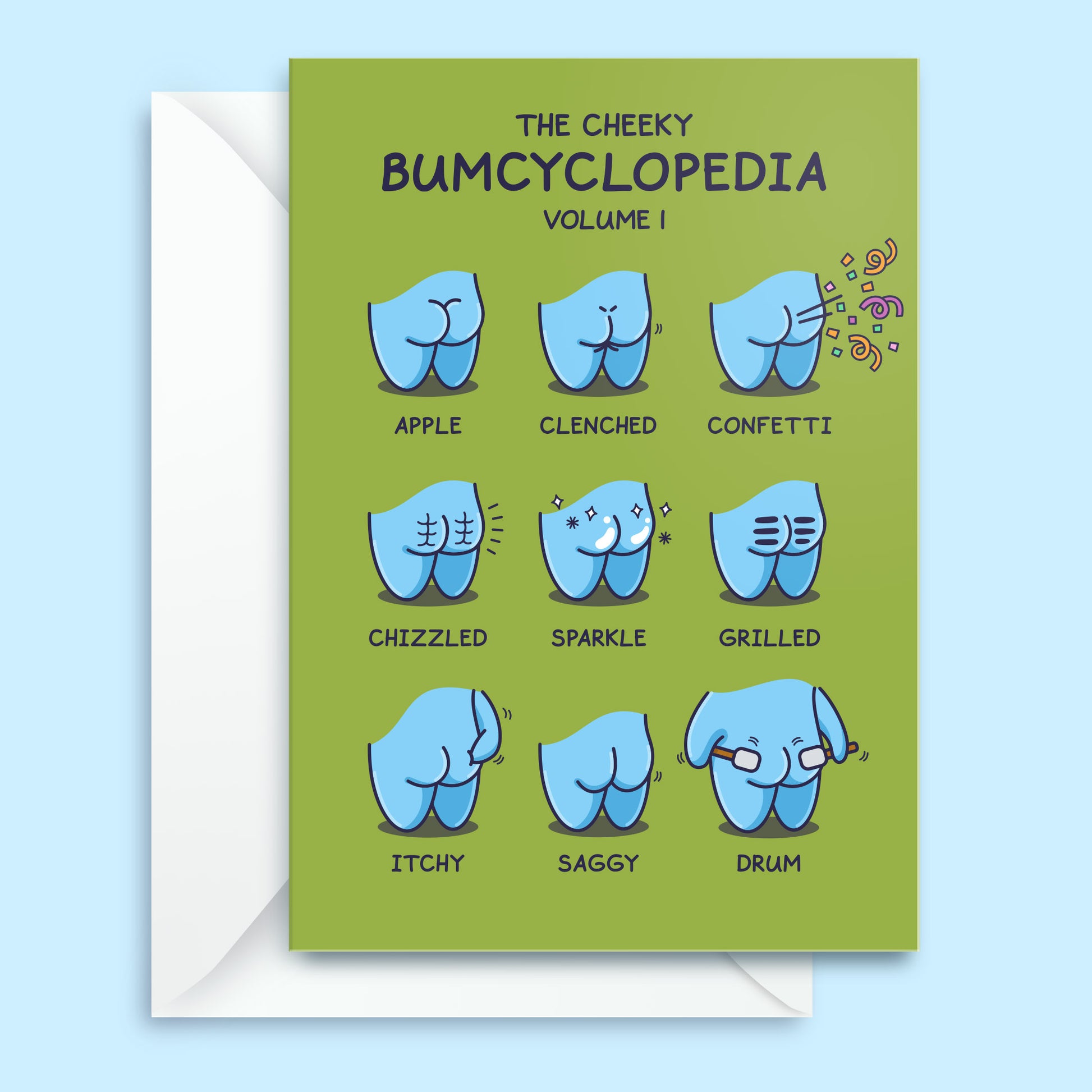 You thought there is only one type of bum? Think again! Time to widen your knowledge with the iconic Cheeky Bumcyclopedia. It's the perfect greeting card for the one who laughs at life’s quirks just like you do.