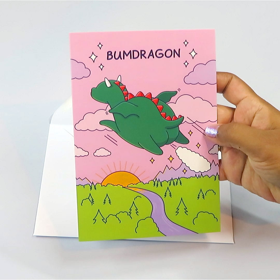 A dragon like no other! Bring delight to that special someone who revels in the same cheeky moments! This funny greeting card can be given for different occasions and is blank inside for your own message.