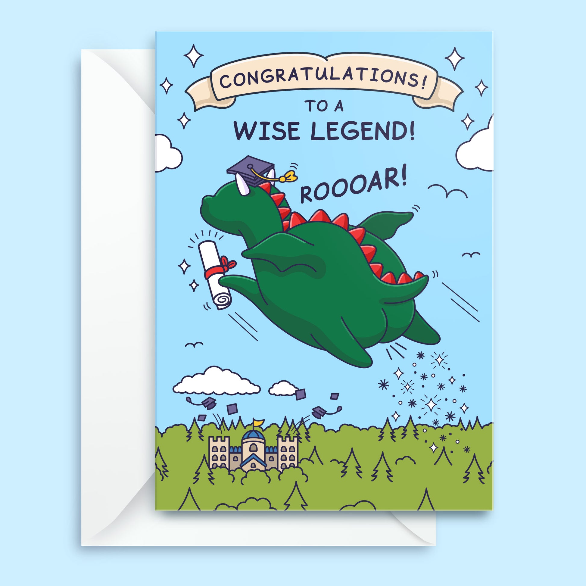 Breath the fire of knowledge with this hilarious graduation card. Suitable for son, daughter, grandson, granddaughter, brother, sister, niece, nephew, cousin and friend.