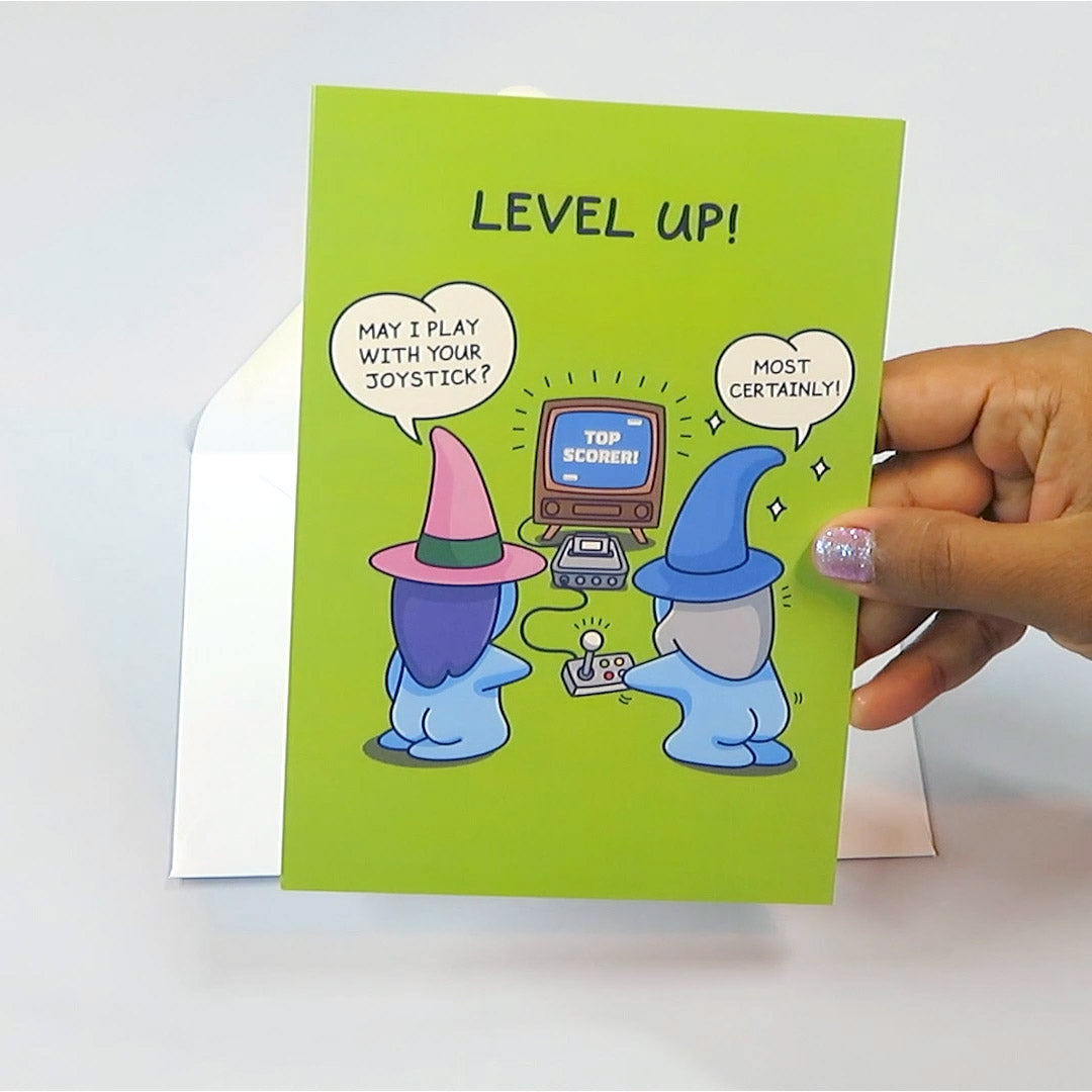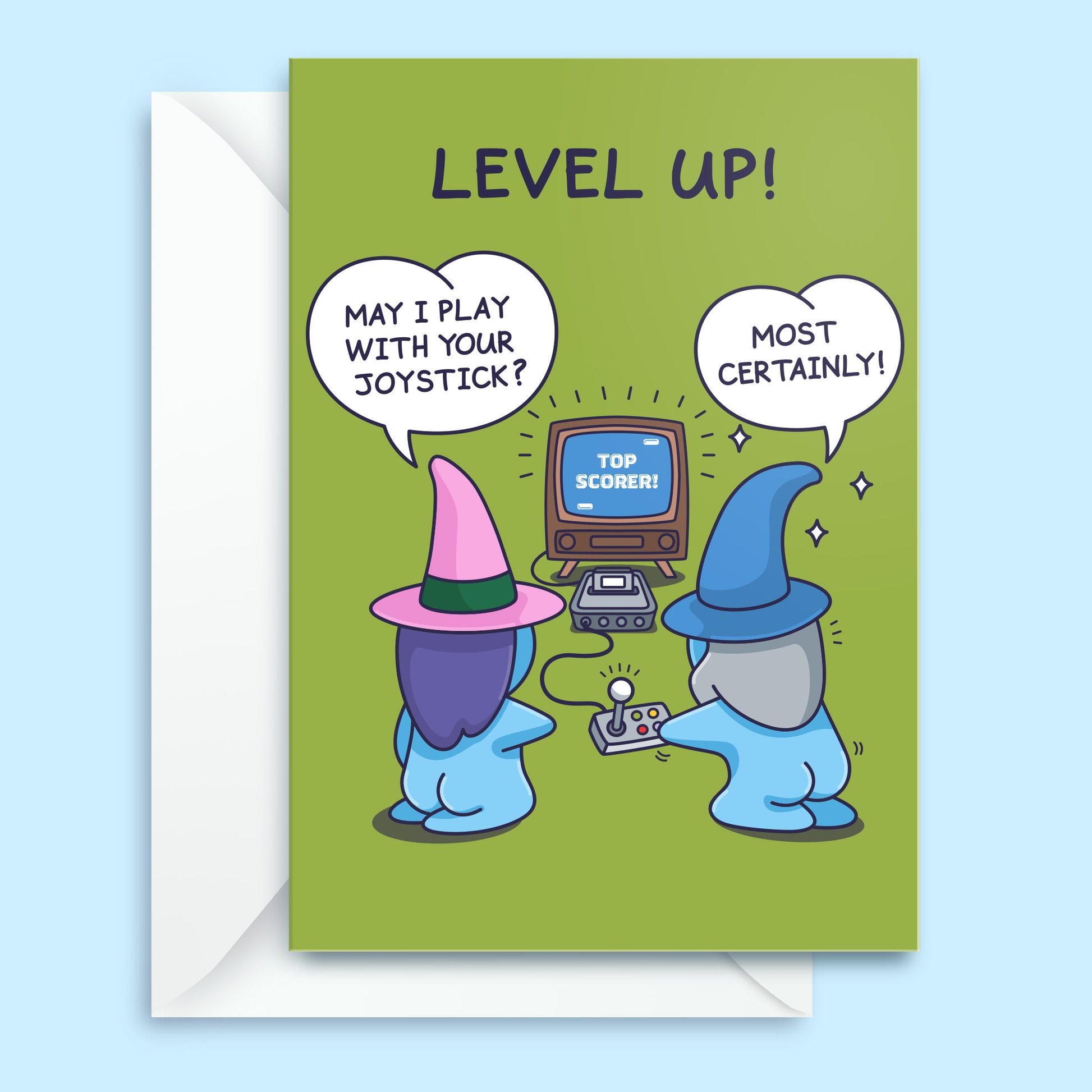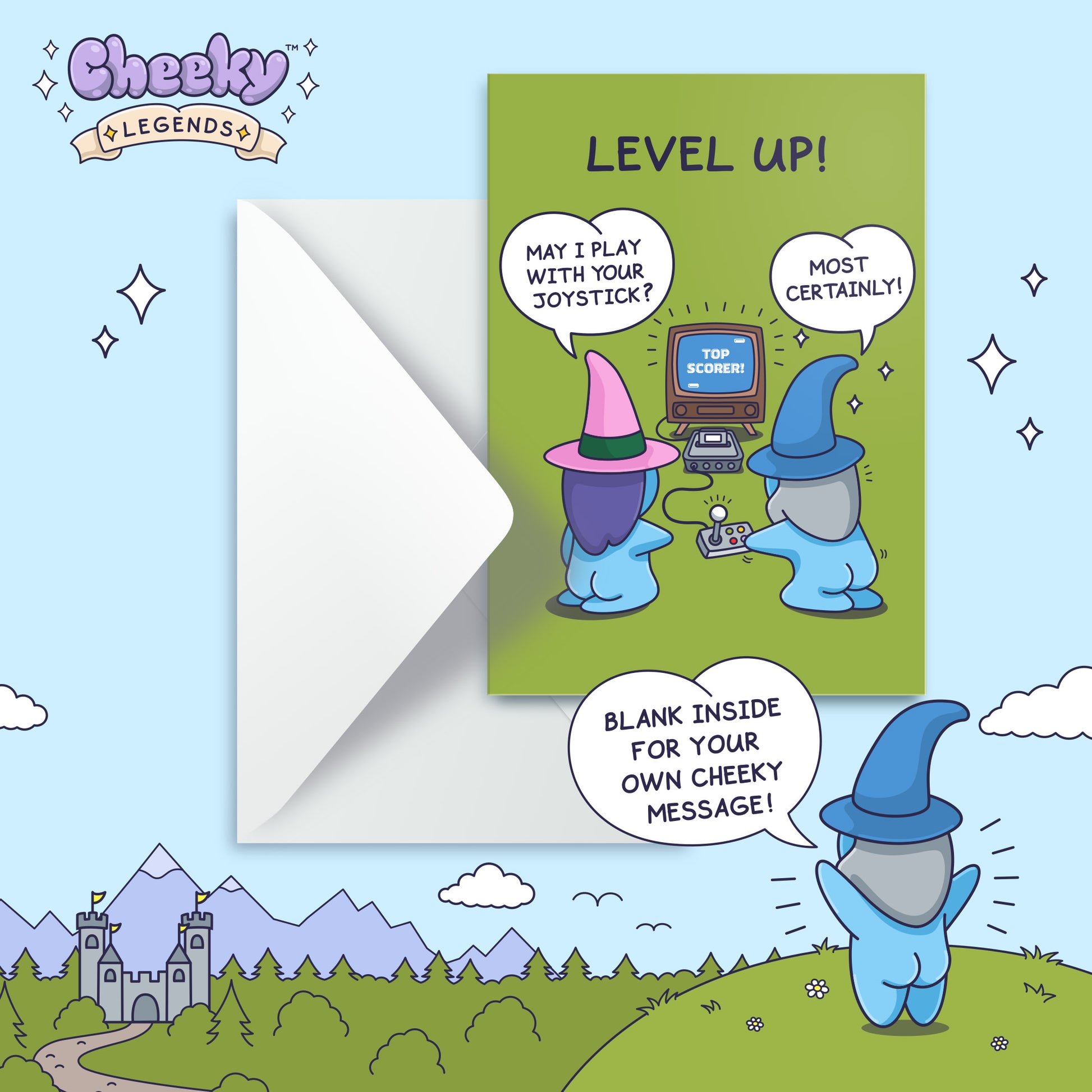 Level Up! Funny Game Card - Valentines day, Anniversary, Birthday Card - Cheeky Witch and Wizard